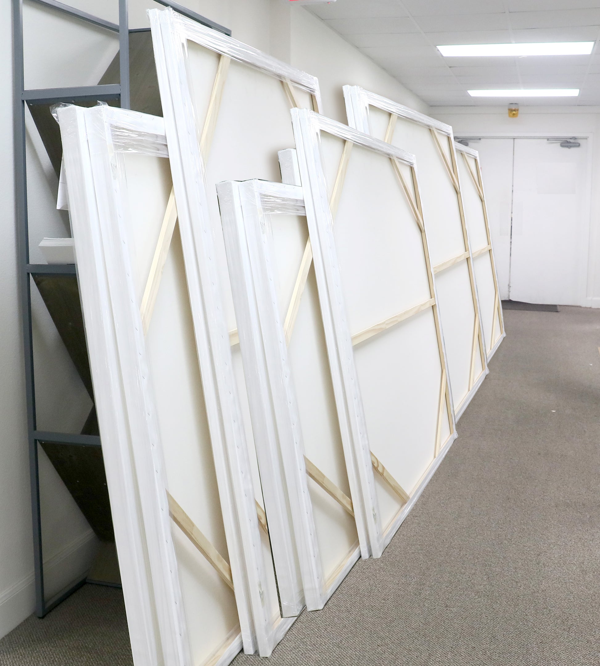 We specialize in stretching canvas for non-traditional sizes not typically found in stores. Our sizes typically range from medium to large, and extra large! all available at an affordable price. Our canvases are not factory made, but instead hand stretched to perfection and completely customizable up to 84in by 84in.