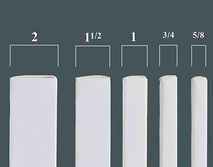 We offer a variety of stretcher bar depths (thickness) to support your custom sized stretched canvas, large or small. We currently offer depths of 5/8in, 3/4in, 1in, 1 1/2in, and 2in.